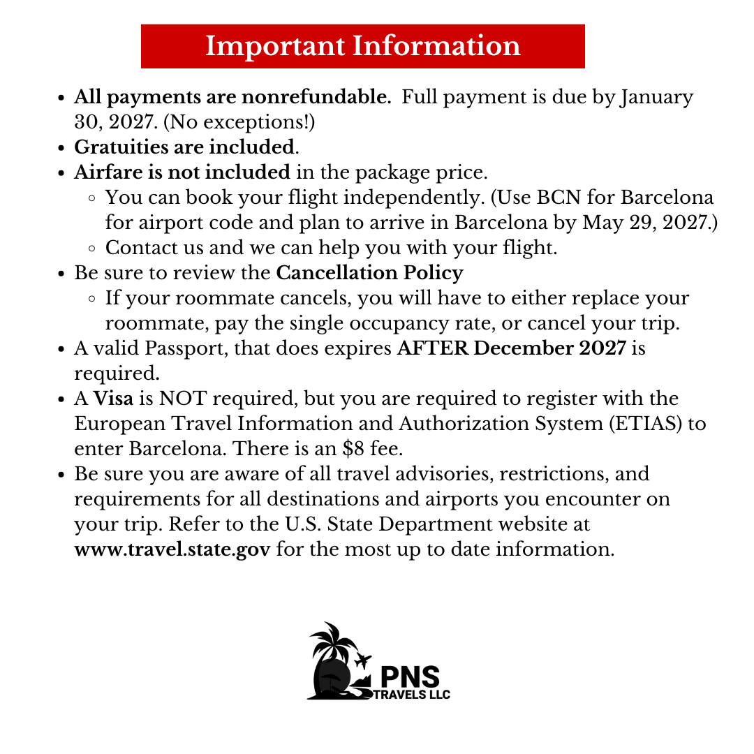 All payments made for this group Virgin Voyages sailing are non-refundable. Once a payment has been processed, funds cannot be returned under any circumstance. This is due to the group contracts and agreements in place with our travel partners, which do not allow refunds on group allocations.