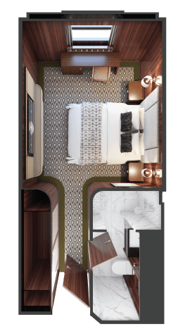 From your spacious sitting area with a sofa, chairs and a vanity, look out over the ocean vistas through the floor-to-ceiling windows of your Juliette balcony with top-drop electric window. Relax and recharge in lavish comfort in your Horizon Stateroom.