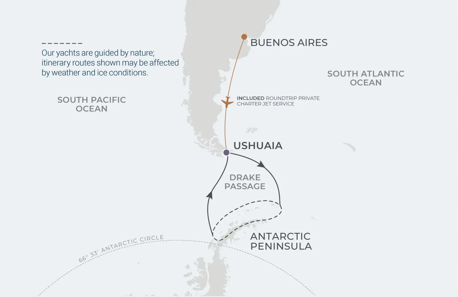 back home if you’re enjoying the post-expedition land program. Or if you’re enjoying the pre-expedition land program, you’ll be transferred to the airport to fly to Ushuaia where you’ll embark on your Antarctica voyage.