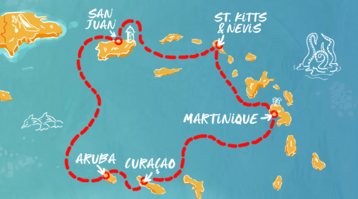 ย Set sail from vibrant San Juan, Puerto Rico on an unforgettable 8โday journey through the Caribbean. Enjoy two relaxing days at sea paired with visits to stunning island destinations including Aruba, Curaรงao, Martinique, and St. Kitts & Nevis. From colorful colonial towns to pristine beaches and lively local culture, each stop offers a unique adventure.