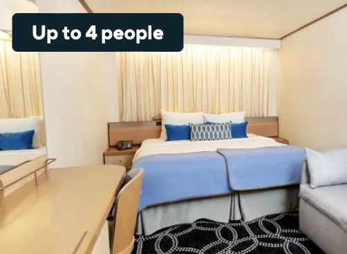 Cabins are the most budget-friendly staterooms, offering simple comfort after a fun-packed day. They can accommodate up to 4 people, with a mix of lower beds, sofa beds and bunk beds, depending on the cabin.