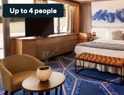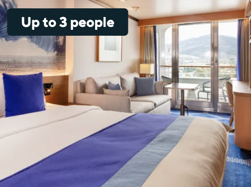 SJA/SJB/SJC - Junior Dream Suites provide spacious comfort with a living area, shower, and balcony, along with concierge service, and access to our VIP spaces. They accommodate up to 3 people with 2 lower beds and a single sofa bed.