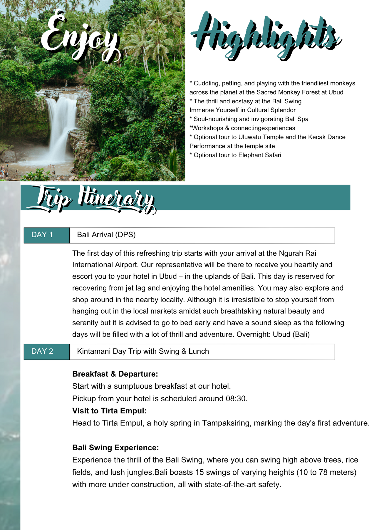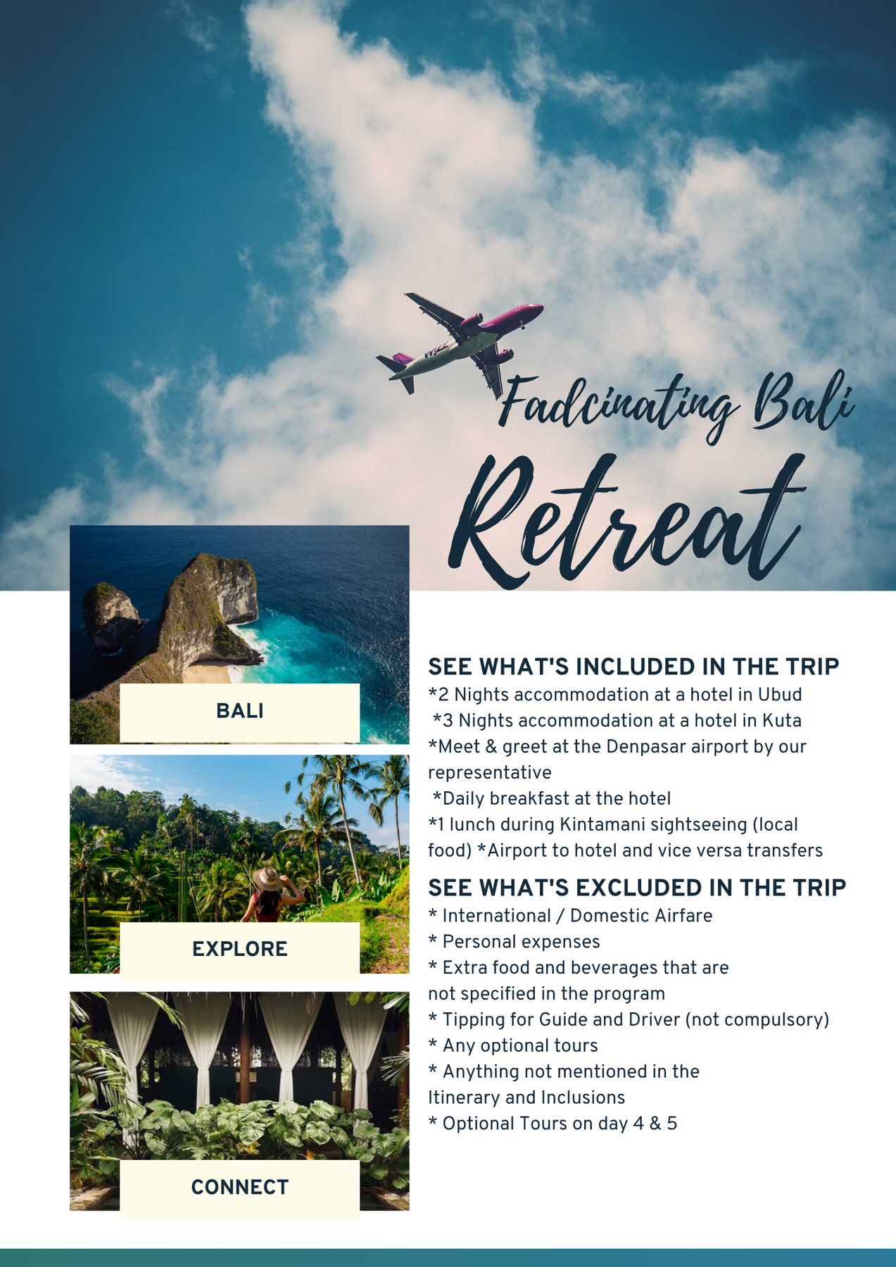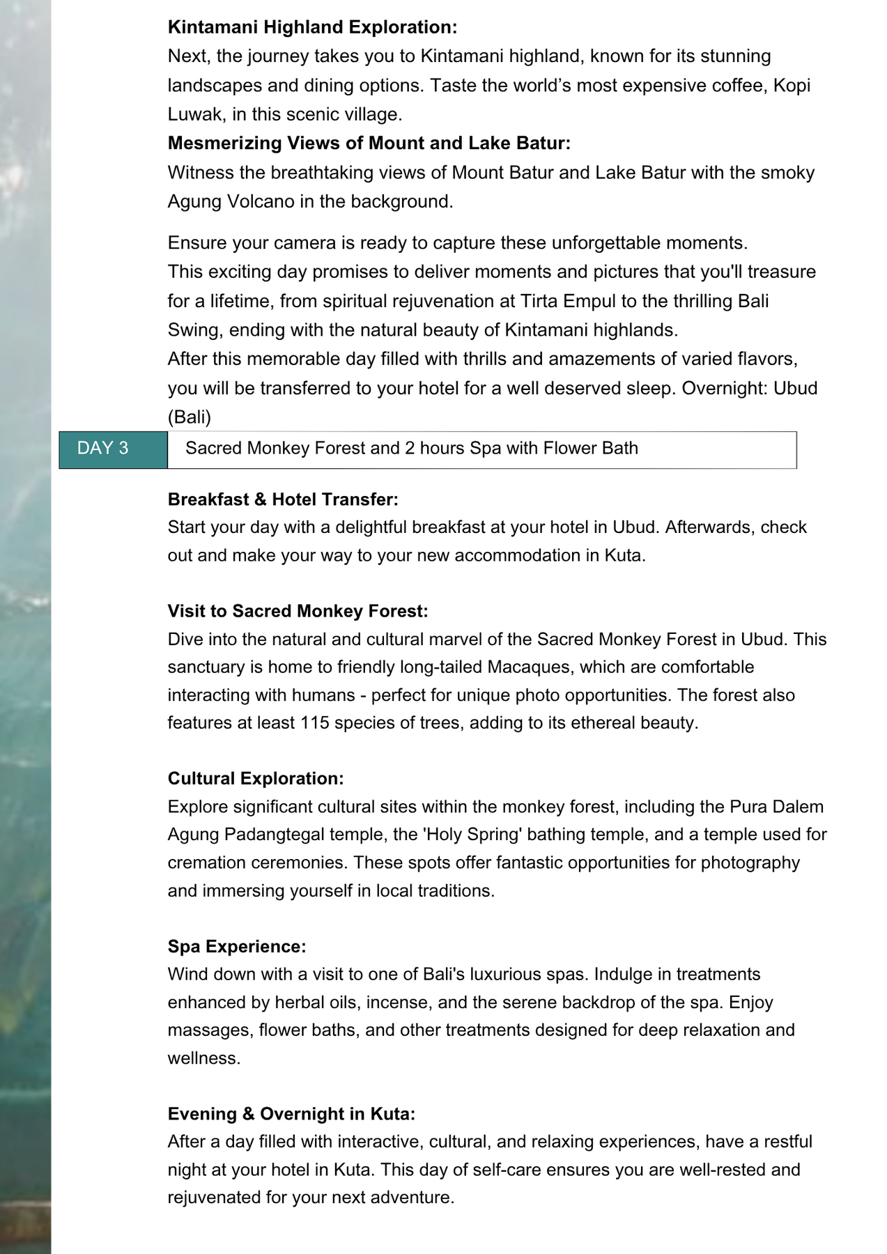 After the optional tour, you’ll be transferred to your hotel in Kuta for an overnight stay.