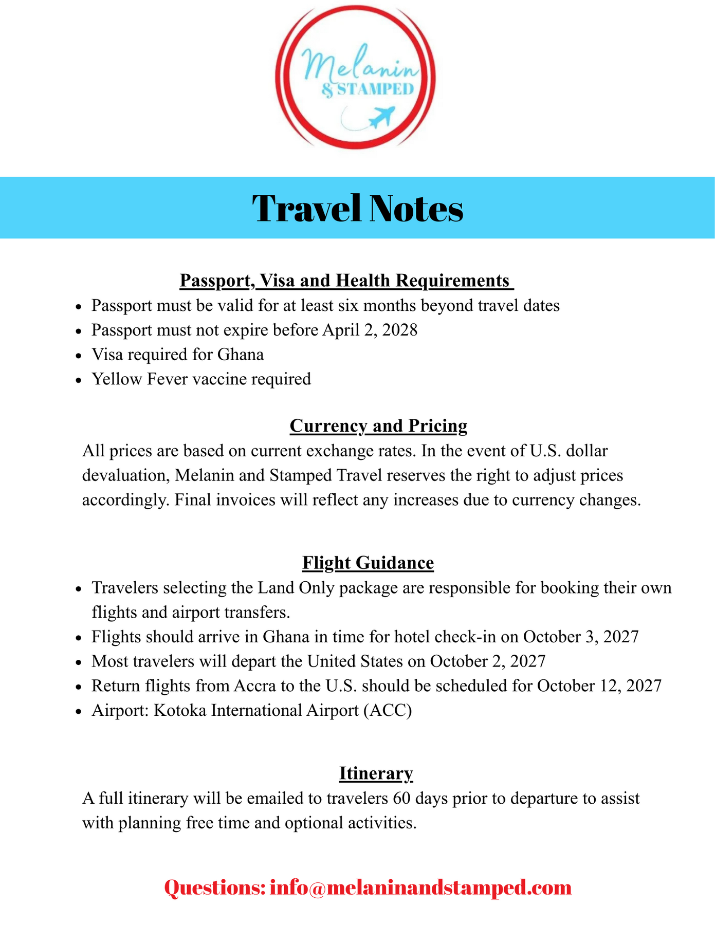 Land and economy airfare| All payments are non-refundable and non-transferable | Double Occupancy = 2 person per room| Departure Airport: Atlanta Hartsfield International Airport