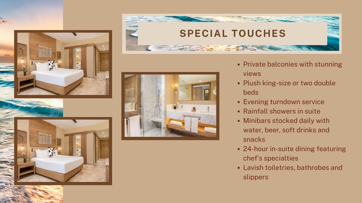 Take in amazing ocean views from a private balcony in this oceanfront junior suite provides beautiful views from a private balcony, plus premium amenities, personal butler service and two double beds.