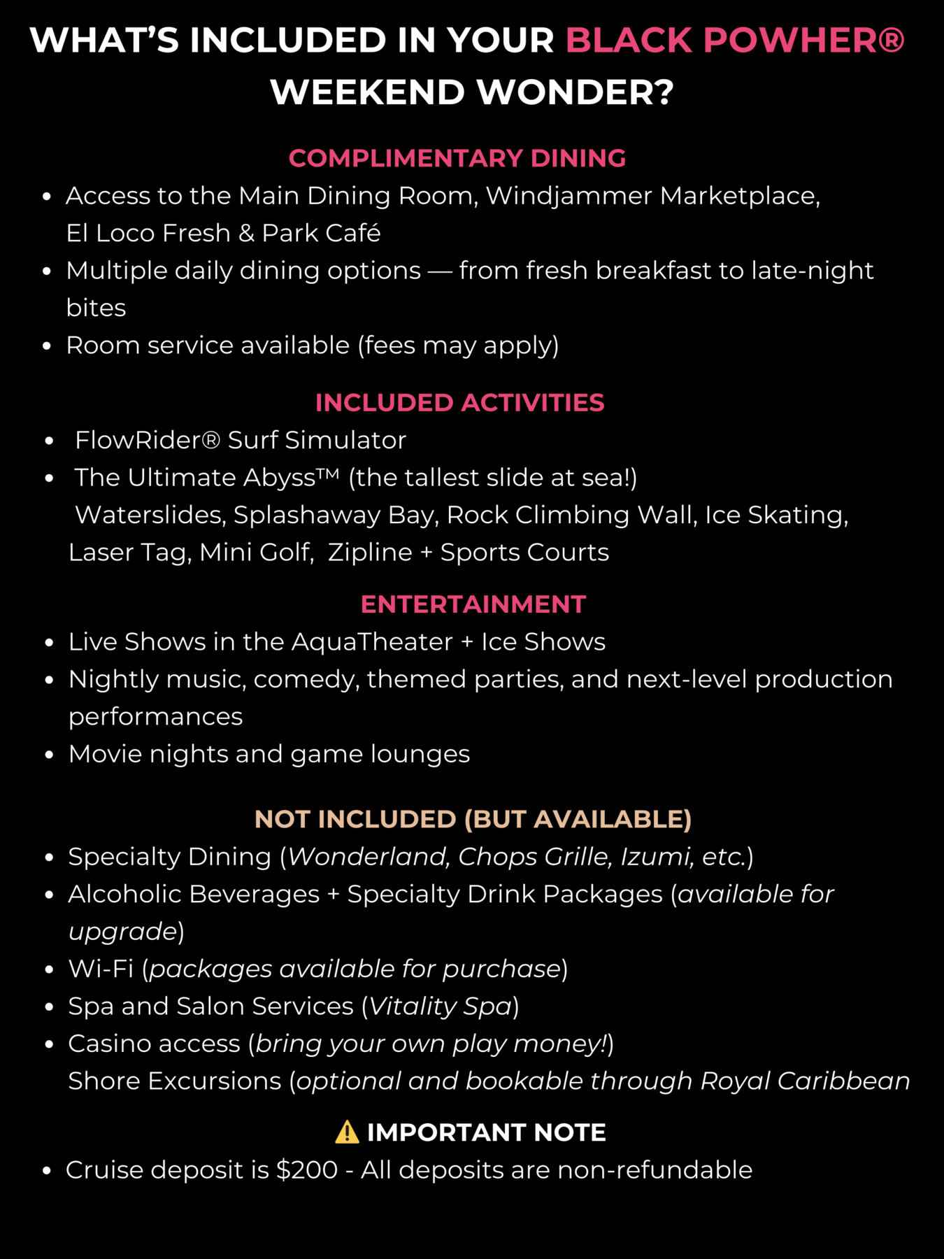 These amenities are available in all of our stateroom categories.