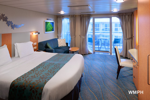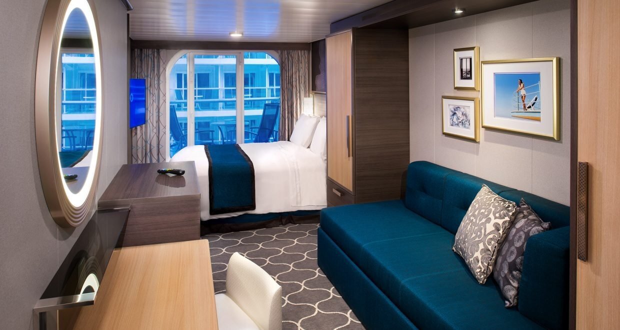 ✔️ Your comfy stateroom with Royal Caribbeans Comfort Bed, TV, full bathroom, storage & more