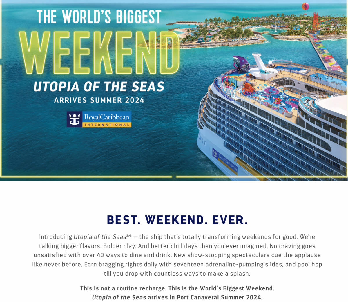 This isn’t vacation days spent. This is bragging rights earned. Cruise to CocoCay to conquer the tallest waterslide in North America and snap a shot from up to 450 feet up in a helium balloon. Grab a drink at the swim-up bar and soak up the scene in the largest freshwater pool in the Bahamas. Or get a taste of Bora Bora with your own Overwater Cabana. Discover the magic of Perfect Day at CocoCay — only onboard Royal Caribbean® Cruises.