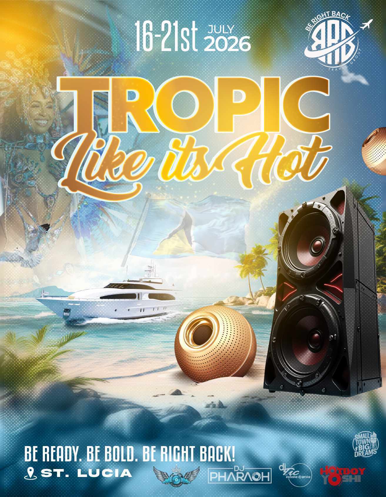 Get ready to turn all the way up as the Be Right Back Crew lands in stunning Saint Lucia during the island’s most electrifying season—CARNIVAL WEEK! This isn’t just a trip—it’s a cultural explosion, a celebration of freedom, and an unforgettable island takeover with your BRBC family.