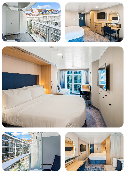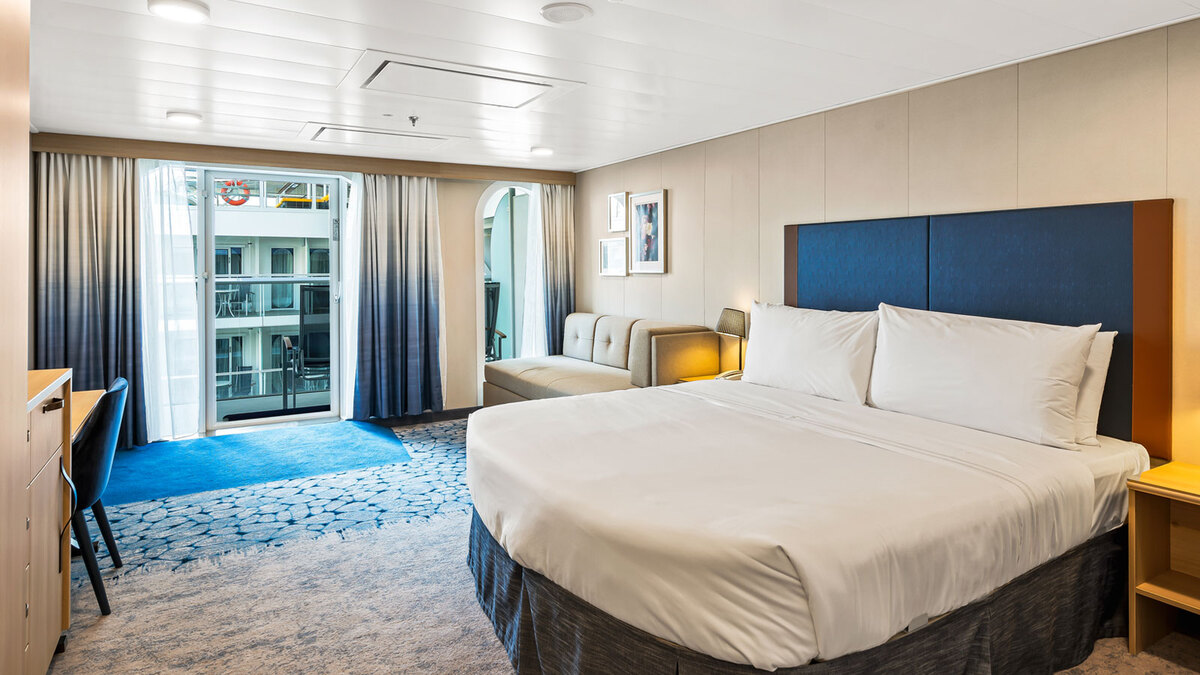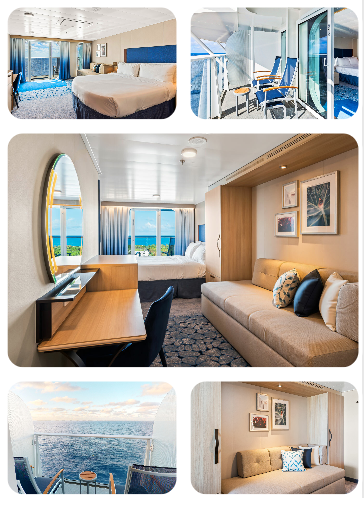 These staterooms offer you a private balcony with chairs and a table where you can sit back and relax.