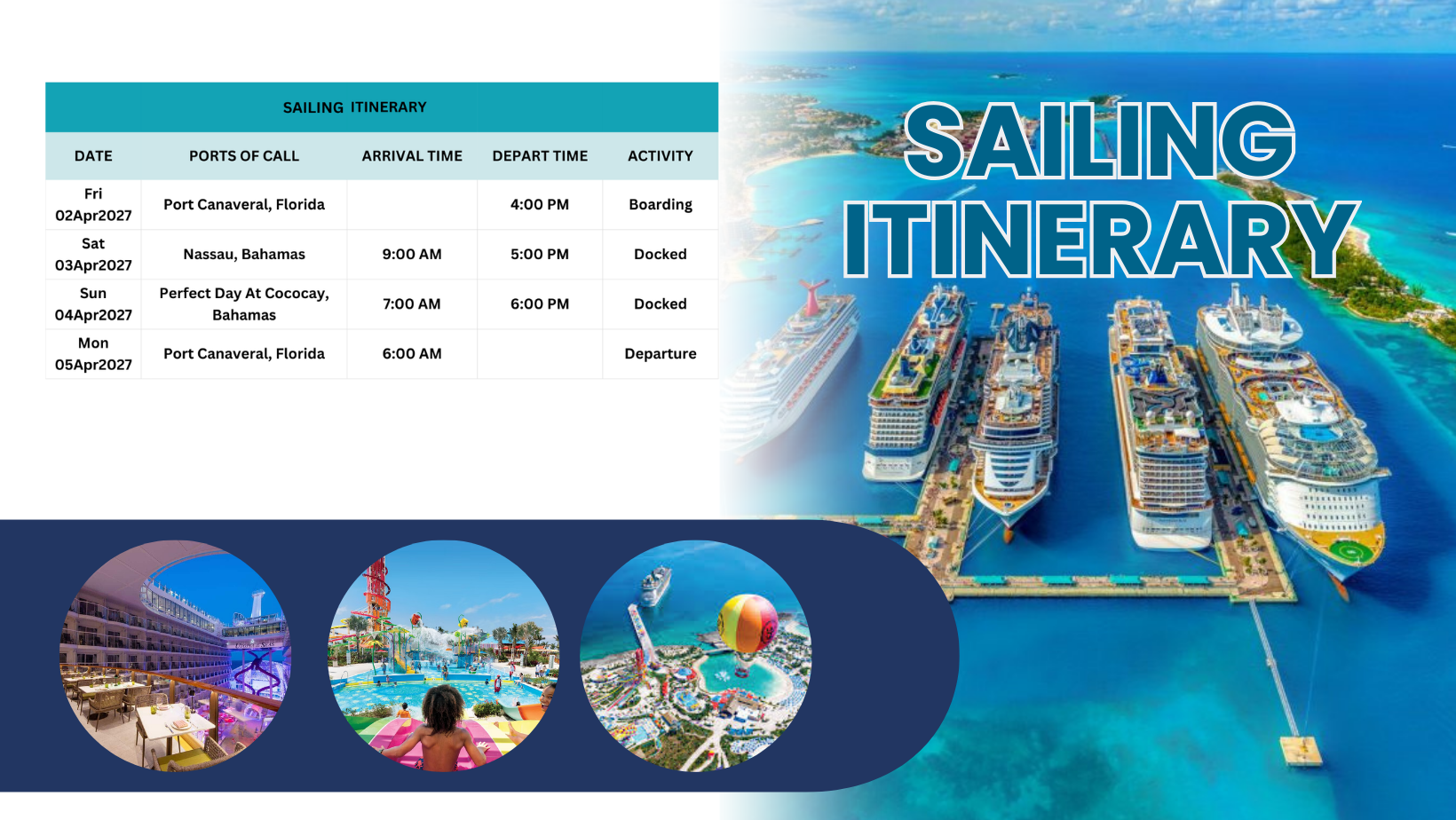 For adventure seekers, soar ten decks high on the Zip Line, ride the waves on the Flow Rider, surf simulator, or tackle rock-climbing walls, water slides, mini golf, and more. Families will love the complimentary Adventure Ocean Youth Program, Splashaway Bay water park, teen lounges, arcade games, and family-friendly activities designed for all ages.