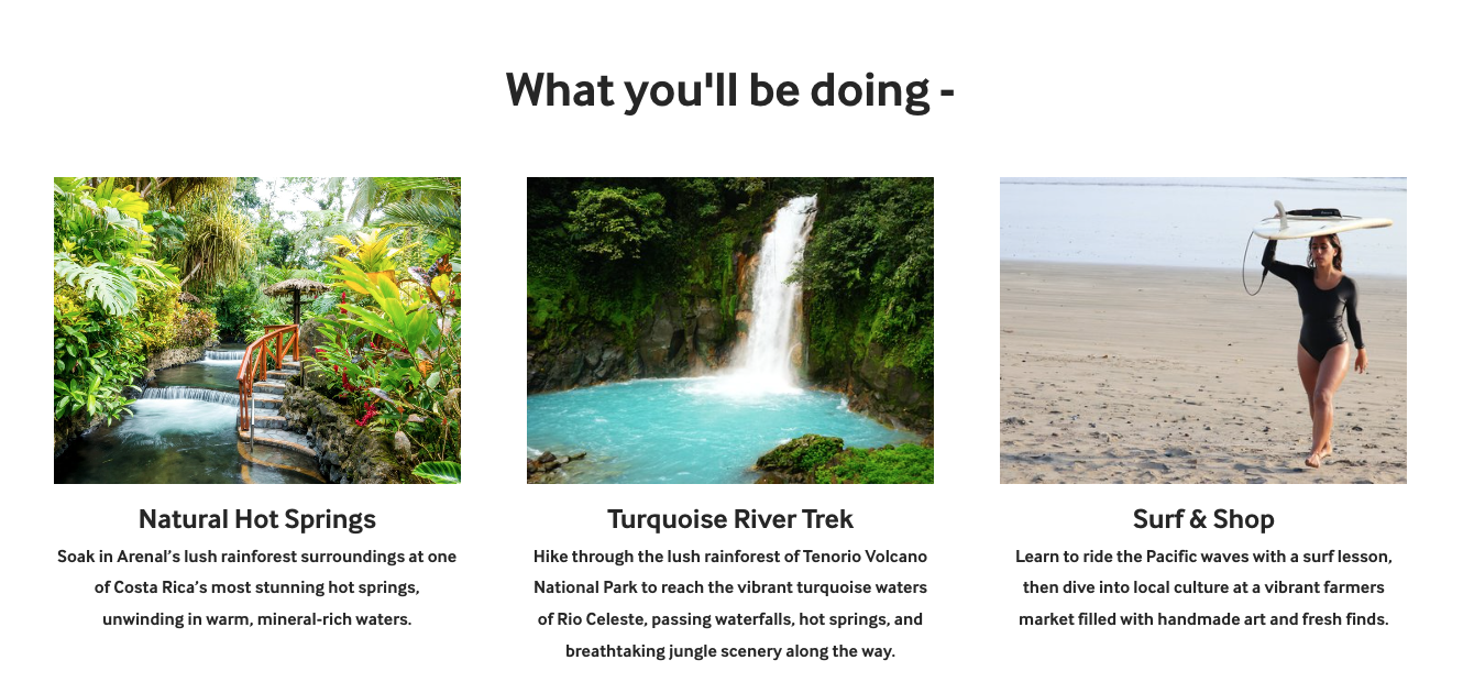 Start your day with a relaxed breakfast before we embark on a scenic drive to Arenal, Costa Rica. After checking into your hotel, you’ll have some time to unwind, unpack, and rest. Later, we’ll visit one of the most stunning hot springs in the country, where you can soak in the natural beauty and relax in the warm waters surrounded by lush rainforest. It’s the perfect way to ease into the vibe of Arenal!