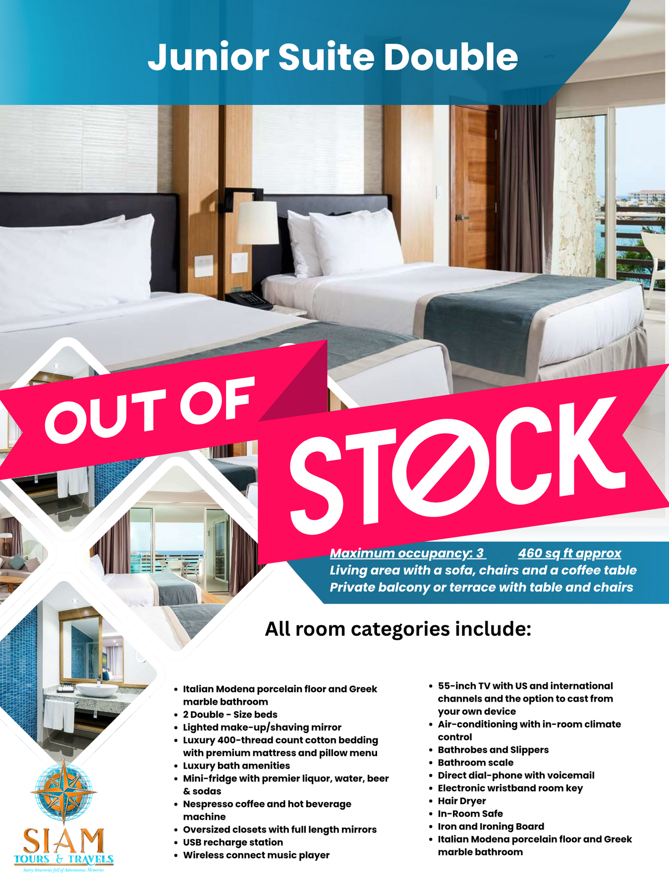 Hotel deviations while in-destination will incur a $75 per person change fee.