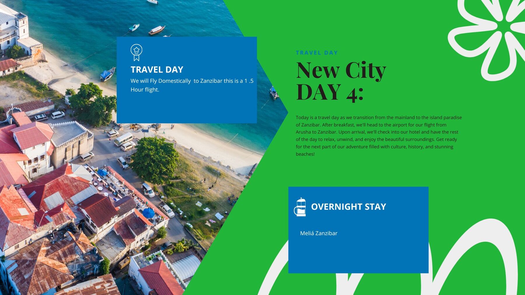 Flight from Arusha to Zanzibar: A seamless domestic flight from Arusha Airport to Zanzibar for a smooth transition from safari to island relaxation.