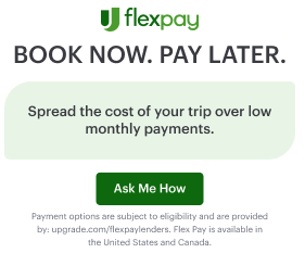 Tanisha Love & Friends Travel proudly offers financing through Flex Pay by Upgrade, giving you the freedom to pay for your vacation over time with easy, budget-friendly monthly installments.