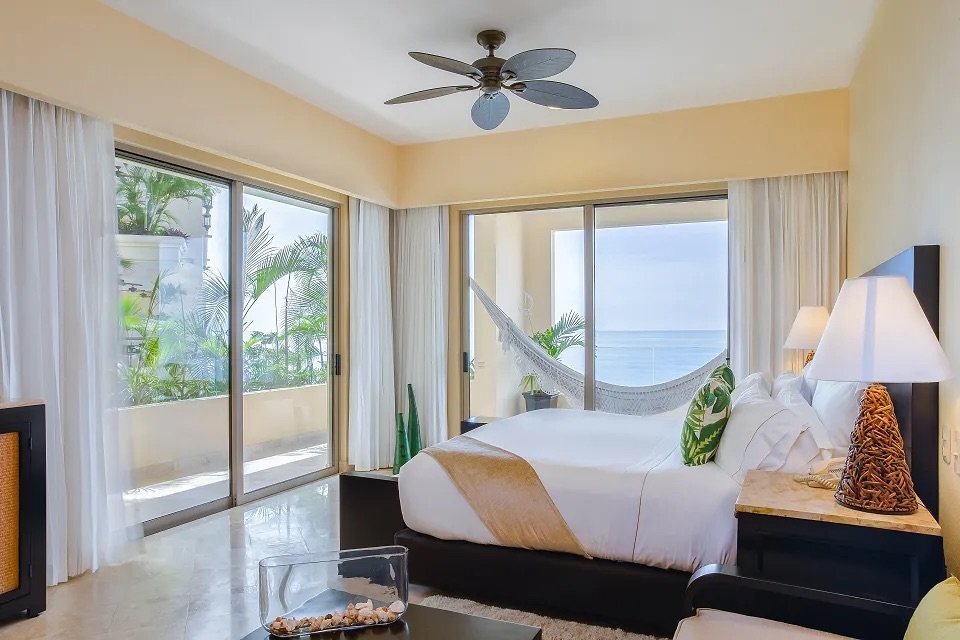 The elegantly designed 633 square foot Deluxe Room has a stunning décor with calming colors and offers ultra-comfort. This ocean-view room’s airy open floor plan beckons you to settle into a luxurious indoor/outdoor lifestyle. Exquisite finishes mirror the unparalleled ocean views framed by the private terrace. Featuring one king or two queen-size beds, a full bathroom, a fully-stocked wet bar, large flat-screen TV, and a private terrace with an oversized hammock.