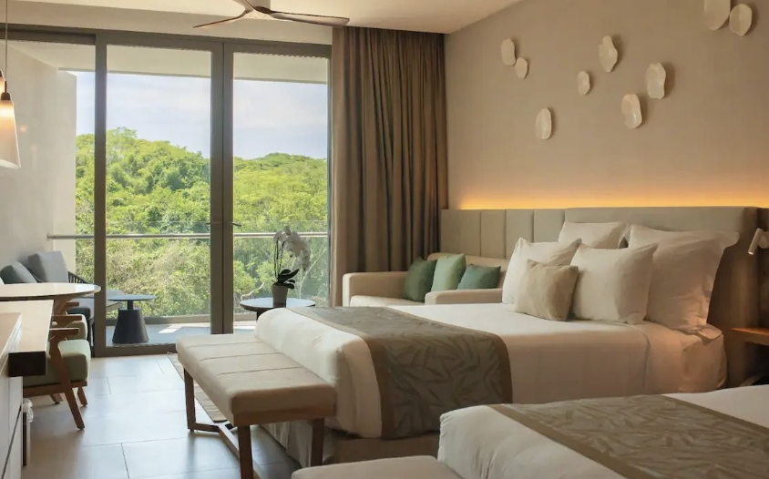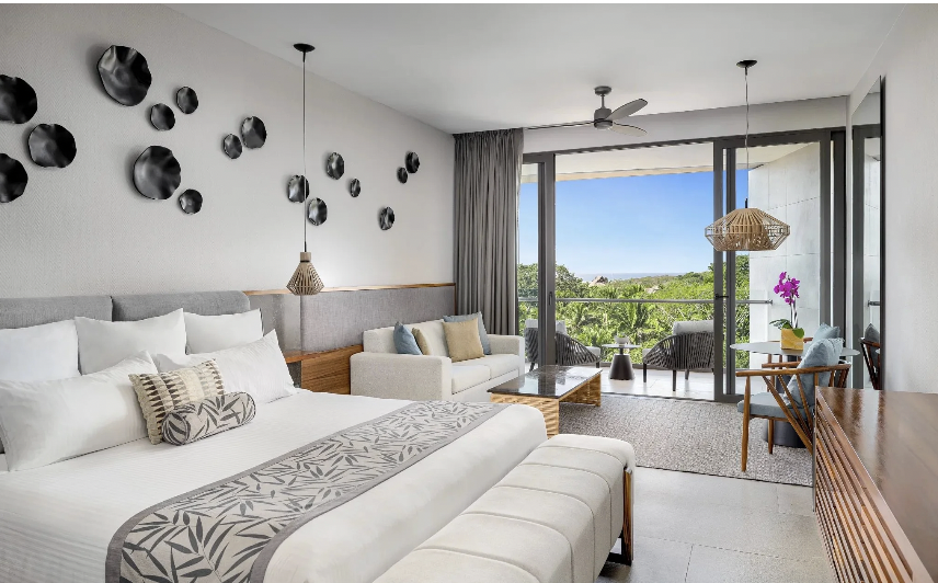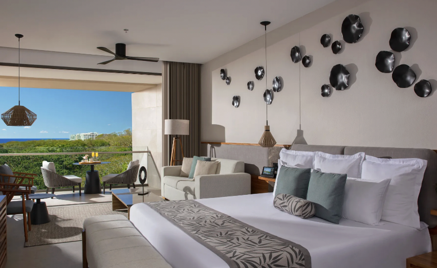 A spacious 518 sq. ft. ocean-view room designed for two guests, featuring a comfortable king-size bed and elegant touches throughout. Enjoy a full bathroom with a separate shower and double vanity, along with a private terrace complete with a relaxing soaking tub. This room also includes access to exclusive Preferred Club amenities for an enhanced stay experience.