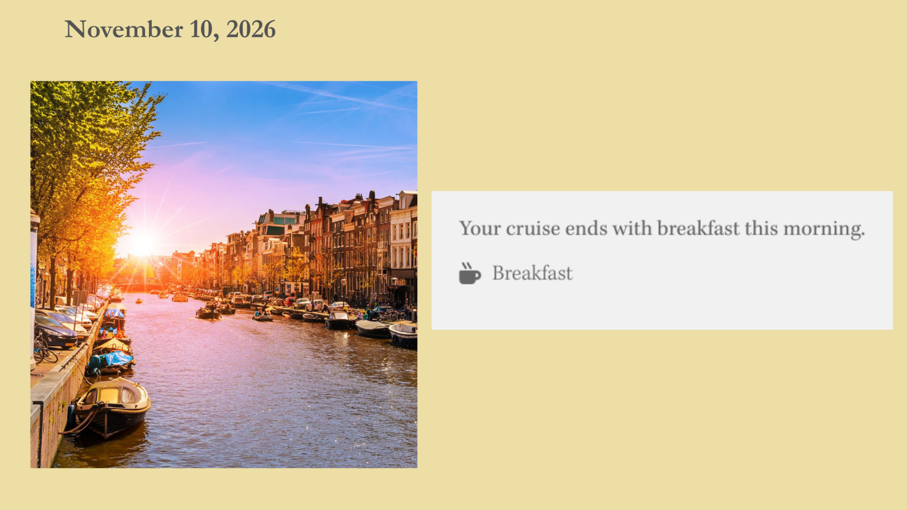 Date will be November 10, 2026 if not selecting a post night in Amsterdam