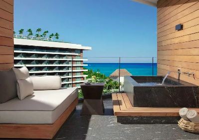 Gaze at the ocean from the private balcony or terrace of this 668-square-foot junior suite with a king bed. The contemporary design and architecture provide a beachy feel while you enjoy sea views and a luxurious bathroom with rain shower.