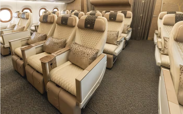 Enhance your travel with our new Premium Economy cabin on select aircraft, featuring increased space and refined interiors. Enjoy wider cream leather seats with adjustable headrests, cushioned leg rests, and calming mood lighting for restful sleep. Seats are located at the front for priority exit, and dining includes local dishes served on Royal Doulton china with stainless steel cutlery. Choose from a variety of drinks, including sparkling wine and premium vintages, paired with chocolates and liqueurs. The upgraded inflight entertainment system offers a 13.3-inch HD TV and Bluetooth connectivity, while enhanced high-speed Wi-Fi is available on our latest A380.