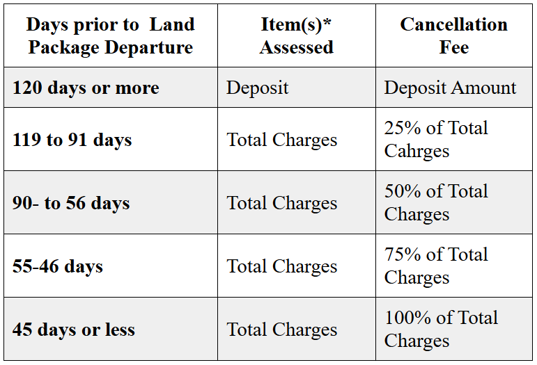 All cancellation request must be submitted in writing via email to info@endlessvacationtours.com