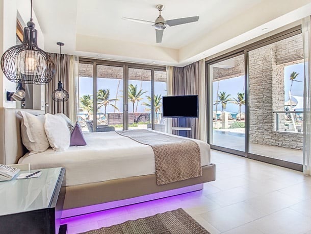 Step into your elegant home away from home with the Luxury Junior Suite Ocean View, designed for couples who crave comfort, style, and a touch of indulgence. Overlooking the sparkling turquoise waters of Punta Cana, this suite blends modern luxury with breathtaking views.