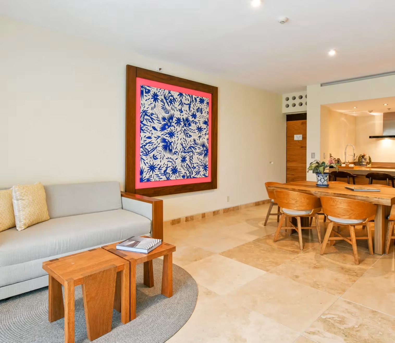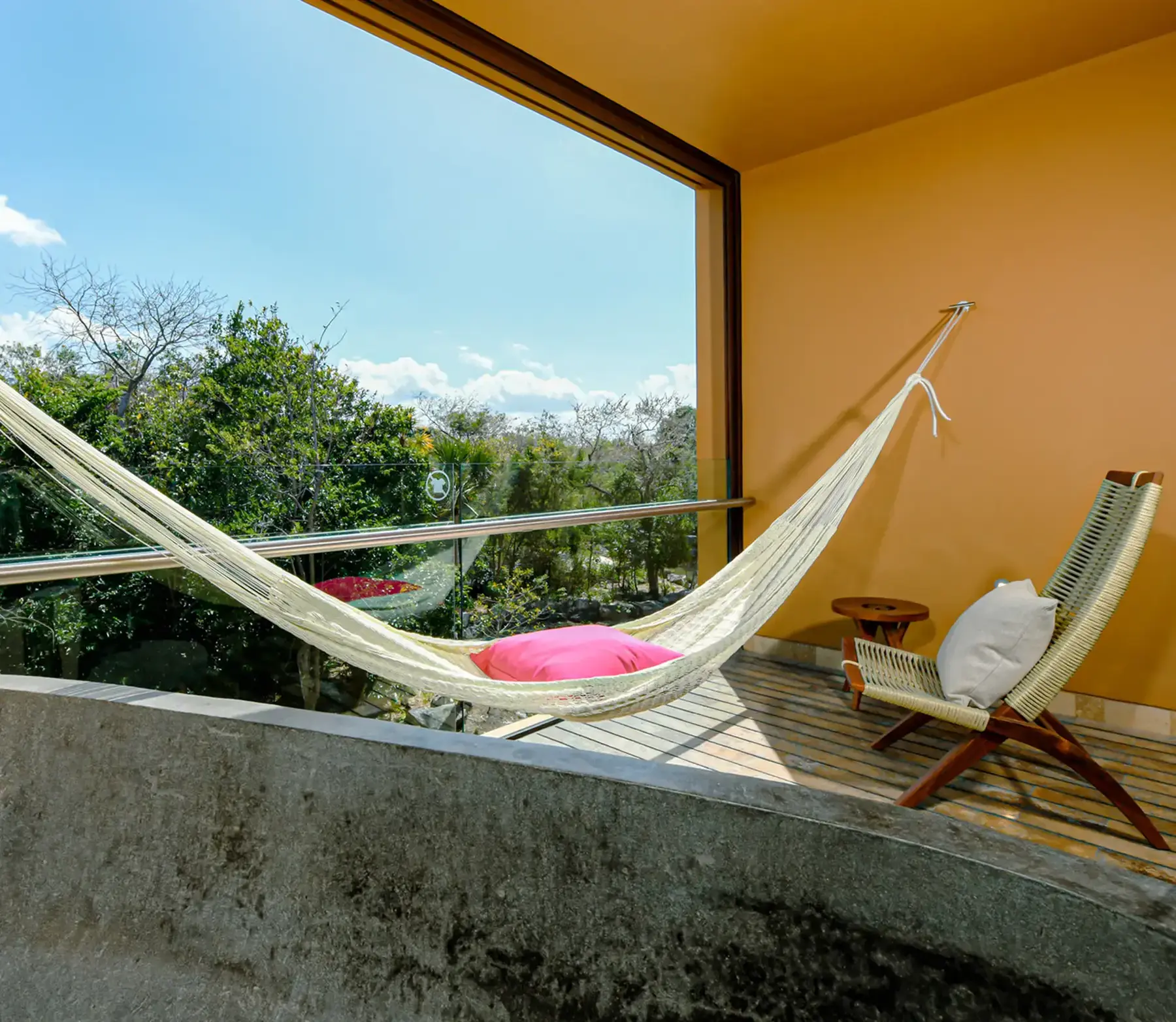 A suite with contemporary Mexican design that complements the greenery of the Mayan jungle and surrounding hotel gardens.
